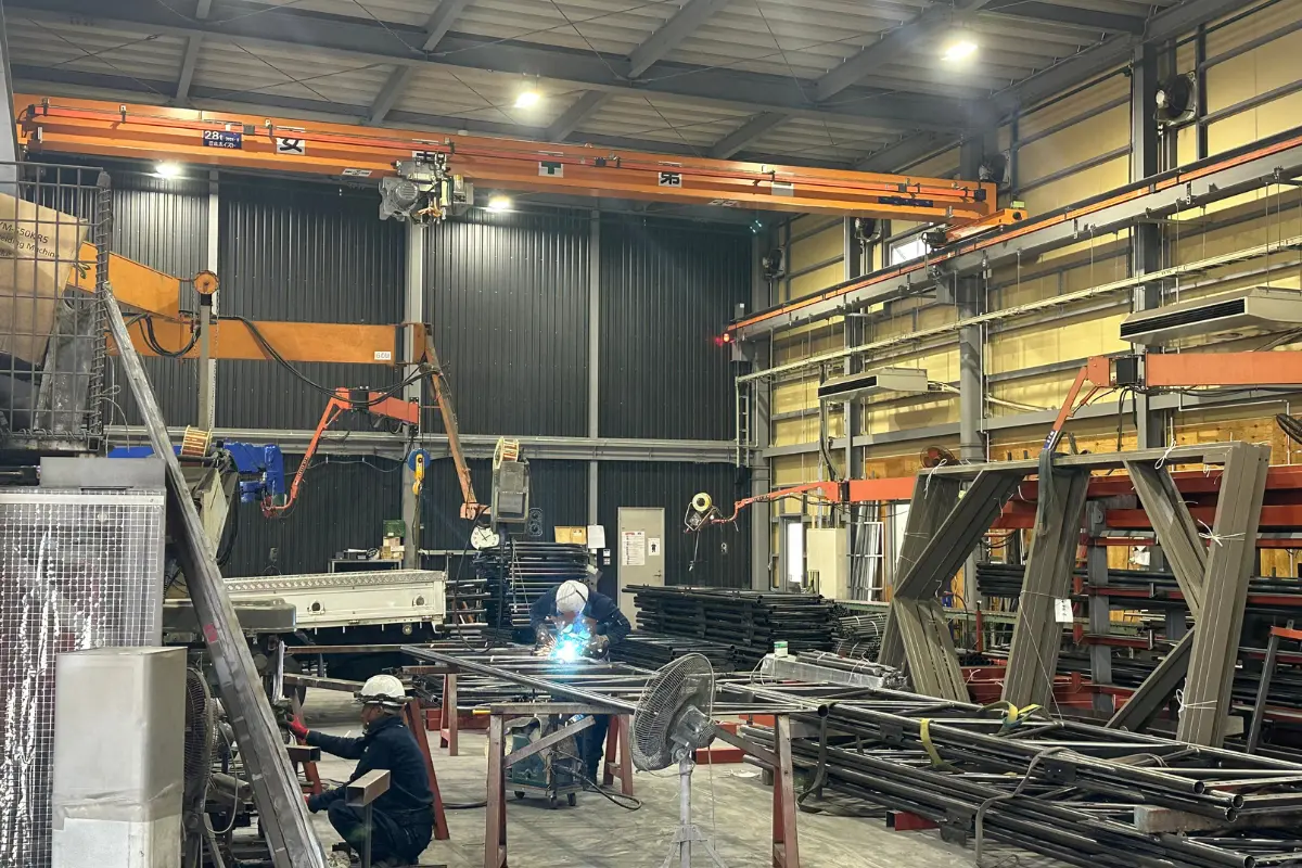 工場内で大型テントに使用する鉄骨部材の加工や溶接を担当します。
