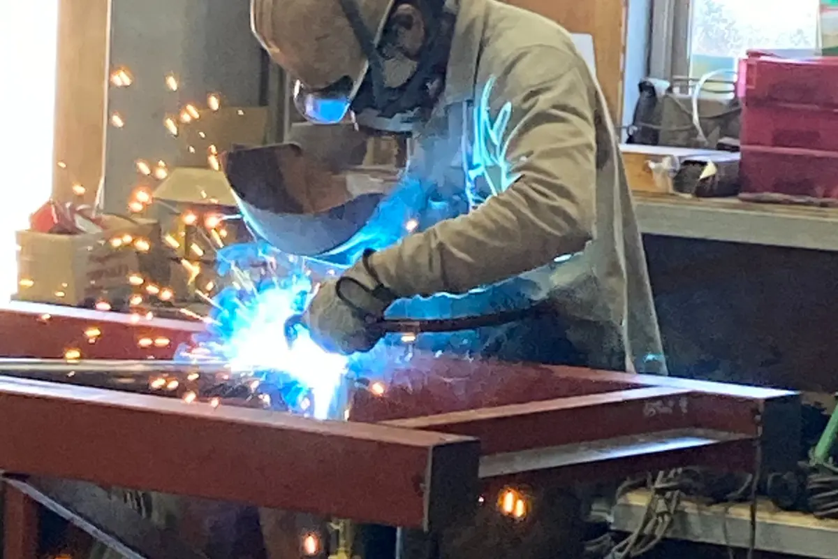 具体的には、設計図をもとにテントに使う鉄骨を切断したり、穴をあけたり、溶接で組み立てていく作業です。