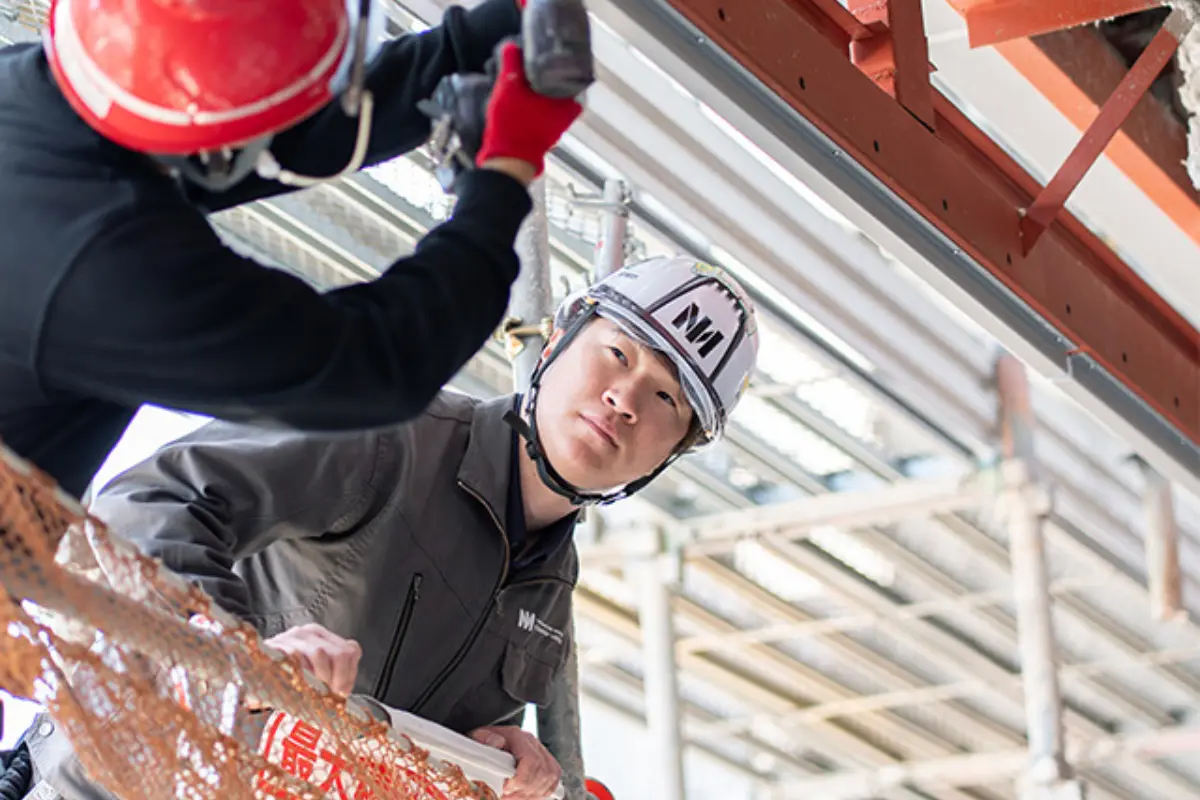 未経験の方は、まず上司とマンツーマンのOJTからスタートし、職人さんの補助業務を行いながら現場の流れを学びます。