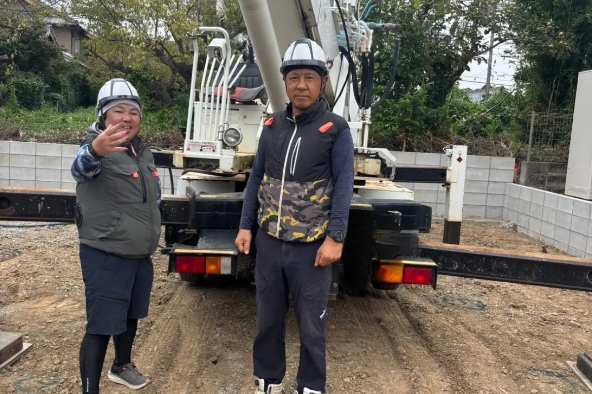 ユンボで砕石を運ぶ補助作業から始め、建柱車を使った穴掘り・採石の投入・締め固めといった流れで、未経験の方でも一連の作業も担当できるよう、しっかり成長をサポートしていきますので、ぜひご応募ください!