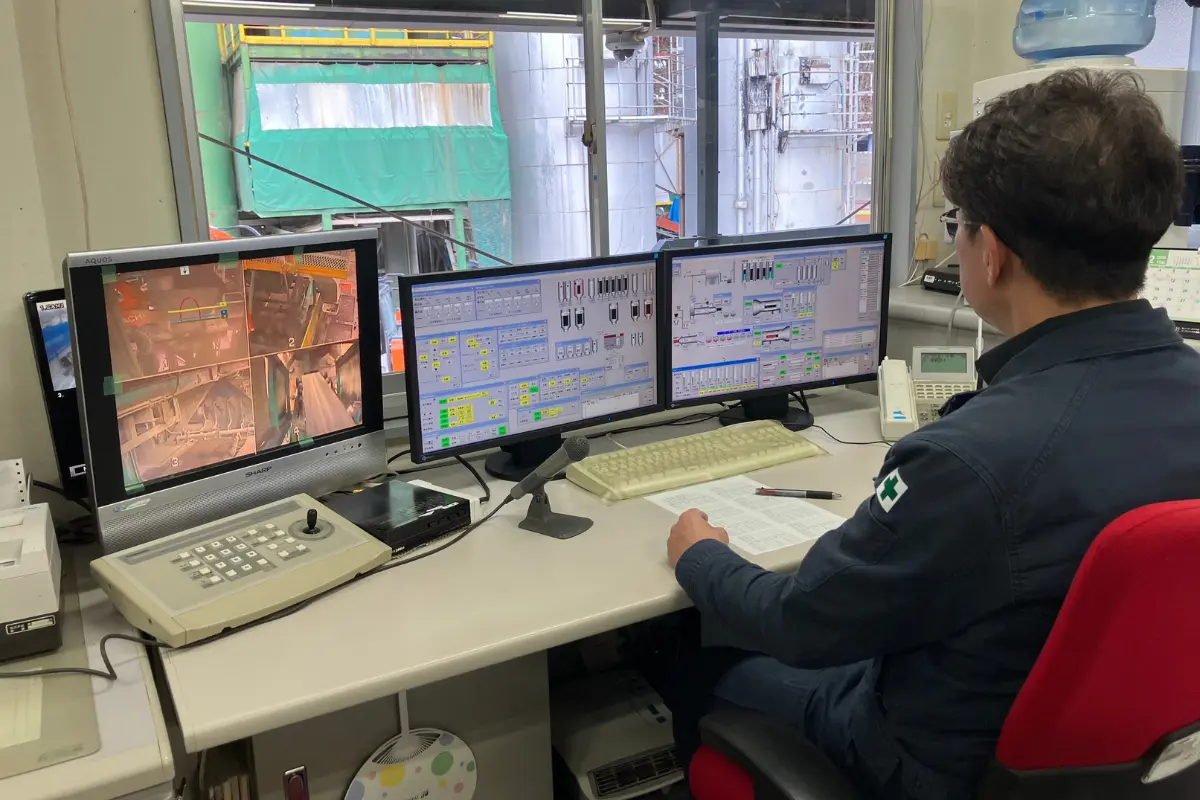 入社後はまず、モニターを確認しながらパソコンを使用したプラント運転からスタート。